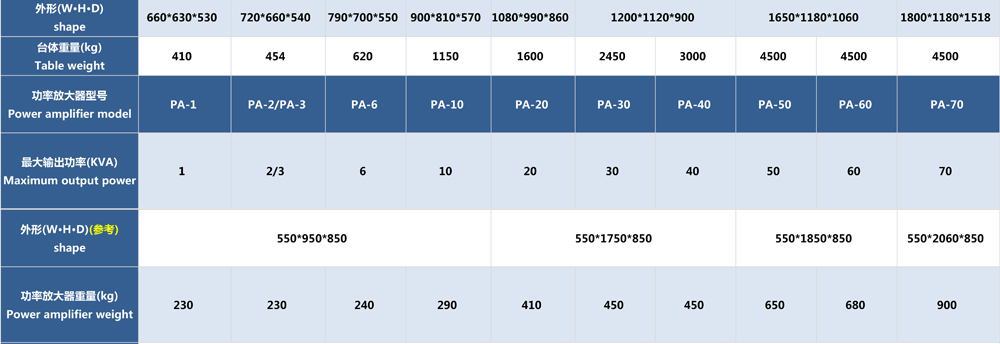 • JQA系列電動振動臺(風冷式)參數表