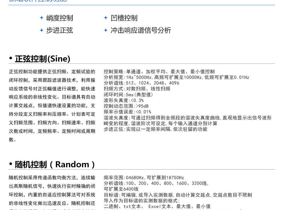 產(chǎn)品型號:JQVT-9000系列 品牌:劍 喬 用途:振動控制器可實現(xiàn)全系列振動模式,包括隨機控制、正弦控制,典型沖擊控制、沖擊響應(yīng)譜控制、復(fù)合振動、路譜仿真以及地震波模擬。同時,為了進一步創(chuàng)新振動控制技術(shù),以適應(yīng)更咨詢熱線:13829135130