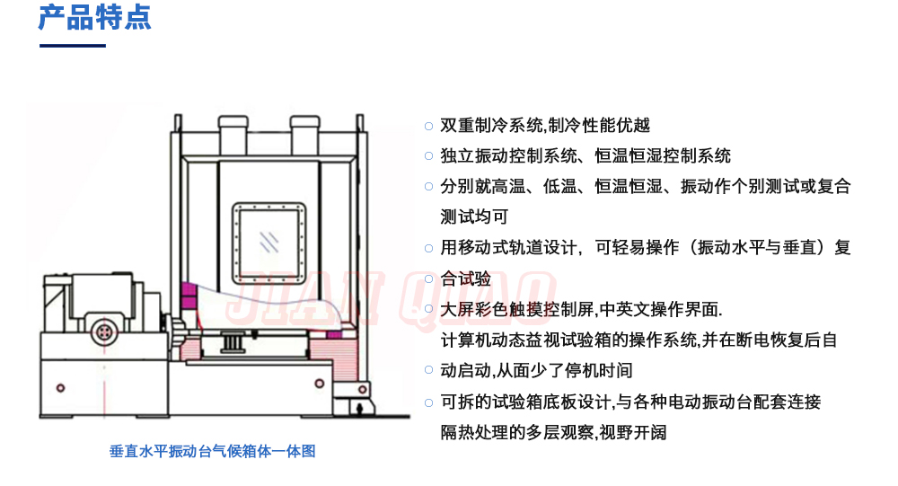 產(chǎn)品型號(hào):JQTHV-500 品牌:劍 喬 用途:垂直+水平振動(dòng)高低溫三綜合箱(JQTHV-500):主要是試驗(yàn)箱和振動(dòng)試驗(yàn)系統(tǒng)的綜合,試驗(yàn)時(shí)將溫度、濕度、振動(dòng)(高溫或低溫),(正弦振動(dòng)或隨機(jī)振動(dòng))以及電應(yīng)力按規(guī)定的周期綜合在同一氣候試驗(yàn)箱中施加到樣品上進(jìn)行溫度、濕度、振動(dòng)的“環(huán)境仿真”試驗(yàn)。咨詢熱線:13829135130